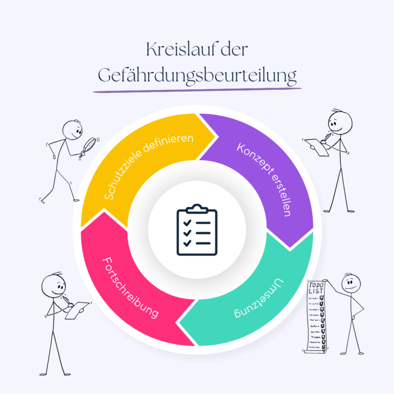 - Regelmäßige Überprüfung: Einrichtung eines Prozesses für die regelmäßige Überprüfung und Aktualisierung der Gefährdungsbeurteilung, um mit technischen, organisatorischen oder gesetzlichen Änderungen Schritt zu halten.